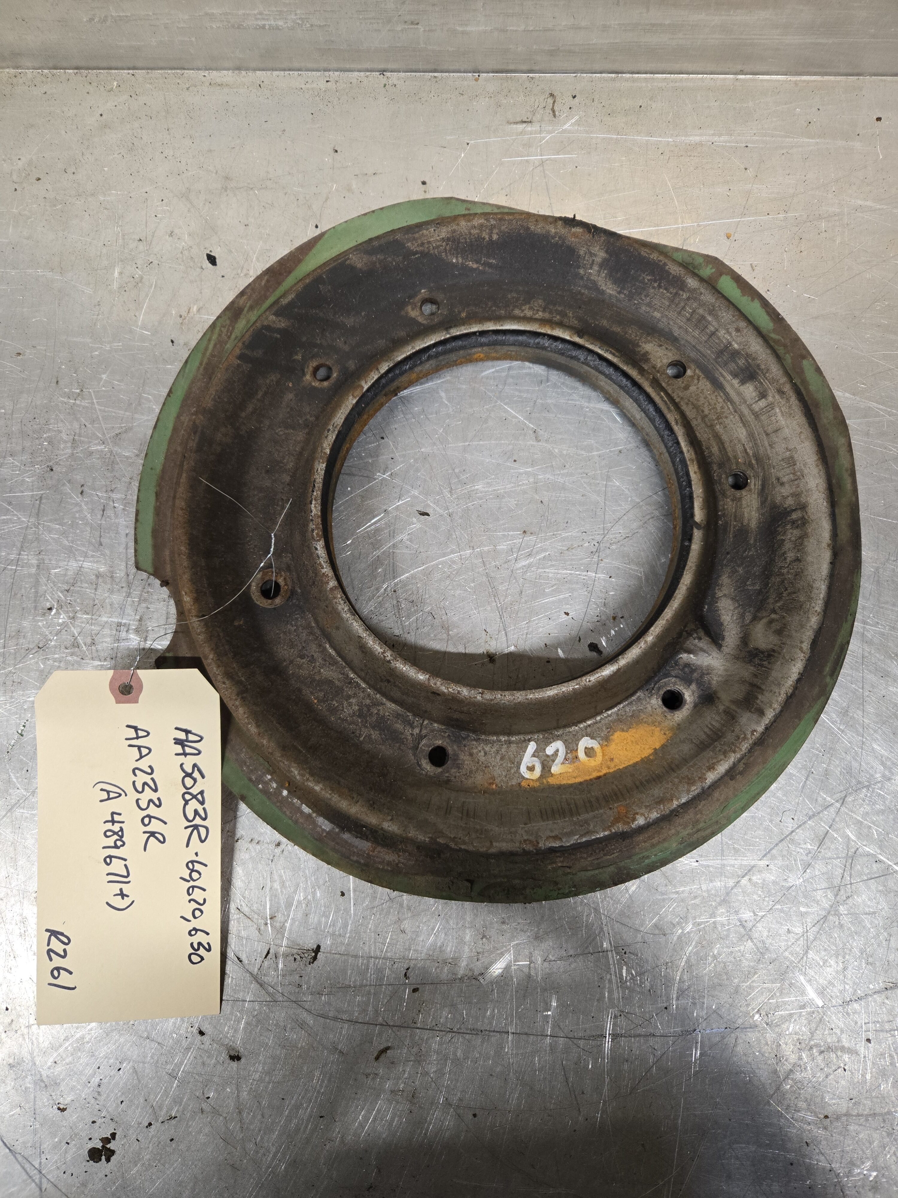 GOOD USED BELT PULLEY DUST SHIELD. FITS A 489671 AND UP. FITS ALL 60, 620 AND 630 TRACTORS.